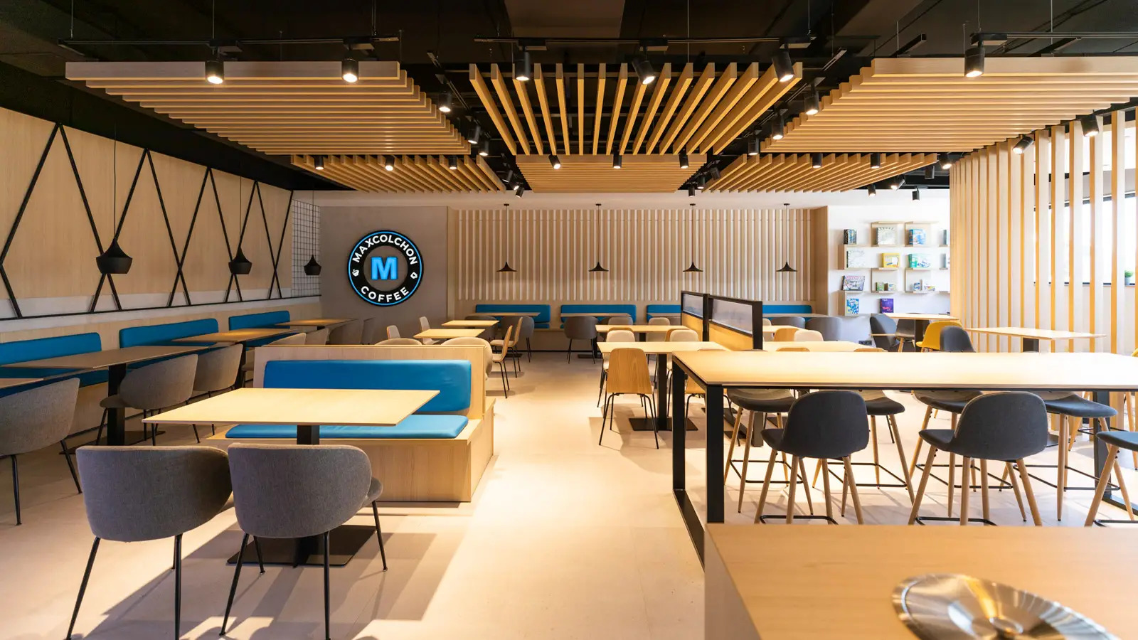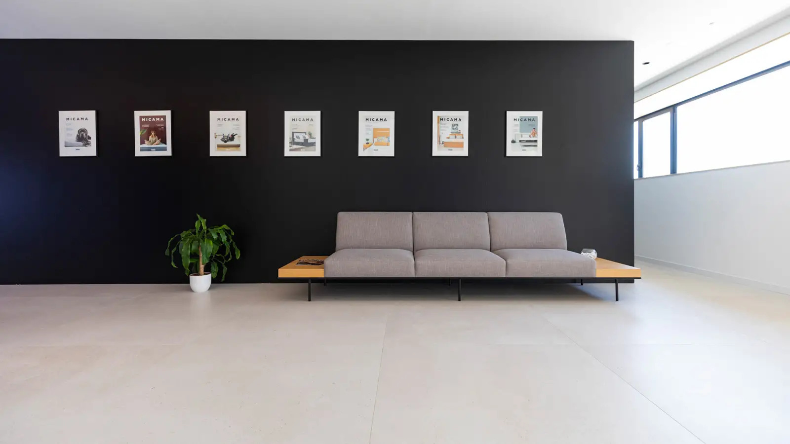 「Binomio Arquitectura建築事務所的簡約室內設計概念與公司的經營理念 "We are your sleep store - 我們是您的睡眠商店”完美結合」MaxColchon公司如此表示。從進入大廳的那一刻起,您就會注意到它,Porcelanosa 的120x120cm大尺寸Bottega White寶緹嘉白地磚與接待櫃台無縫融合。
