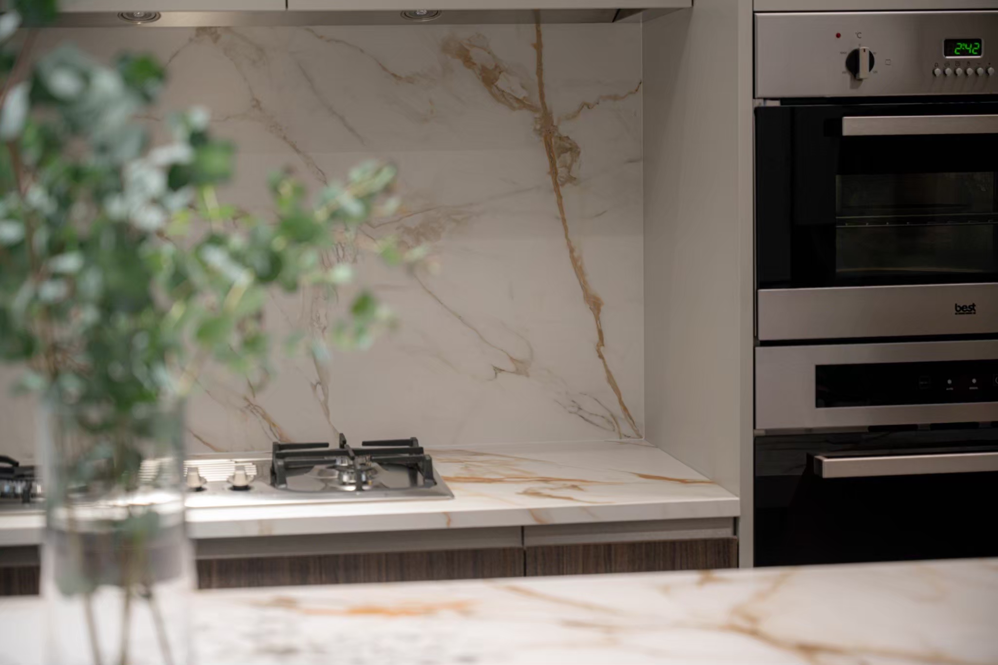 業主選用來自西班牙GAMADECOR的Residence系列廚具,豐富多樣的櫃體、面板、五金選擇,提供完整的料理與收納需求