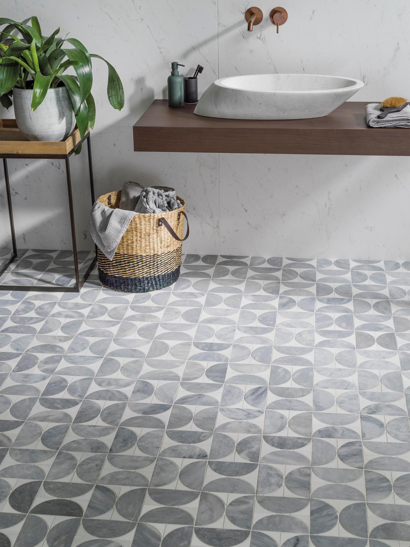 全新的Figure意象系列馬賽克,是L'Antic Colonial回歸大理石純淨和自然的最新創作,三種不同的幾何構圖和花朵造型馬賽克,凸顯天然石材耐人回味溫潤質感