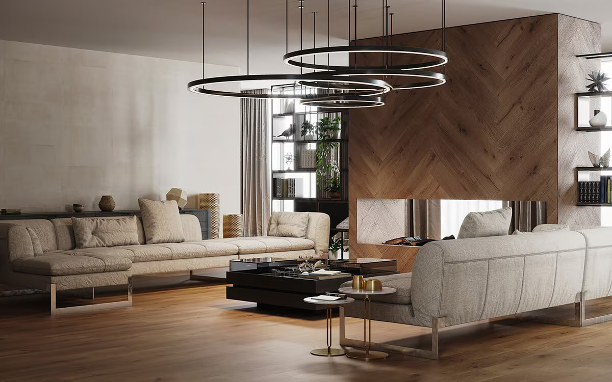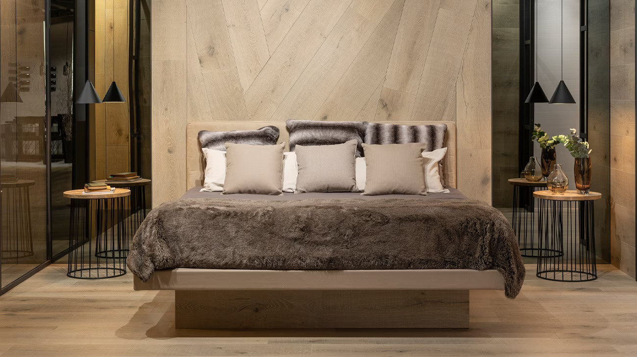溫暖柔和的木紋常給人如同置身森林般自然、清新的感受,結合柔軟、蓬鬆的織物(如厚毛地毯)加深溫暖舒適的生活感。