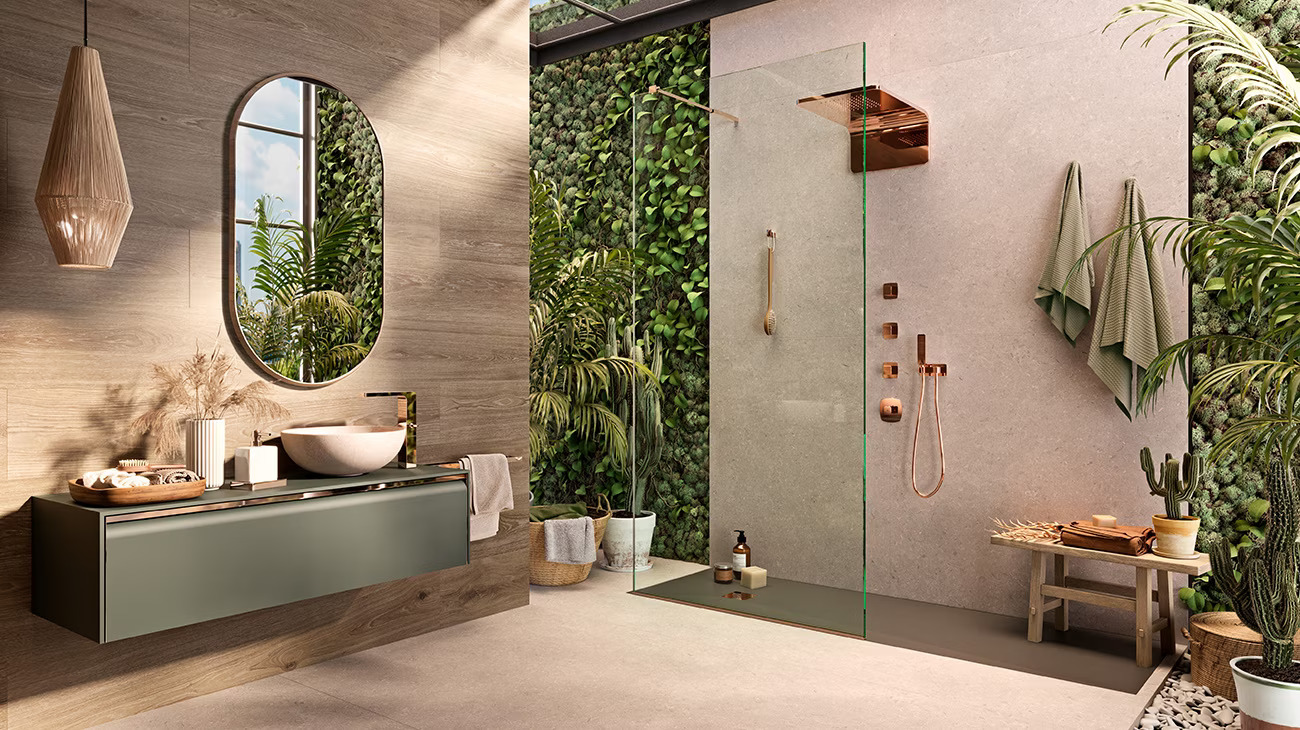 多元花色且好保養的特性與自然美學搭配組合,您可以使用Porcelanosa和XTONE輕磁板等系列來增強垂直花園的創造力和功能性。