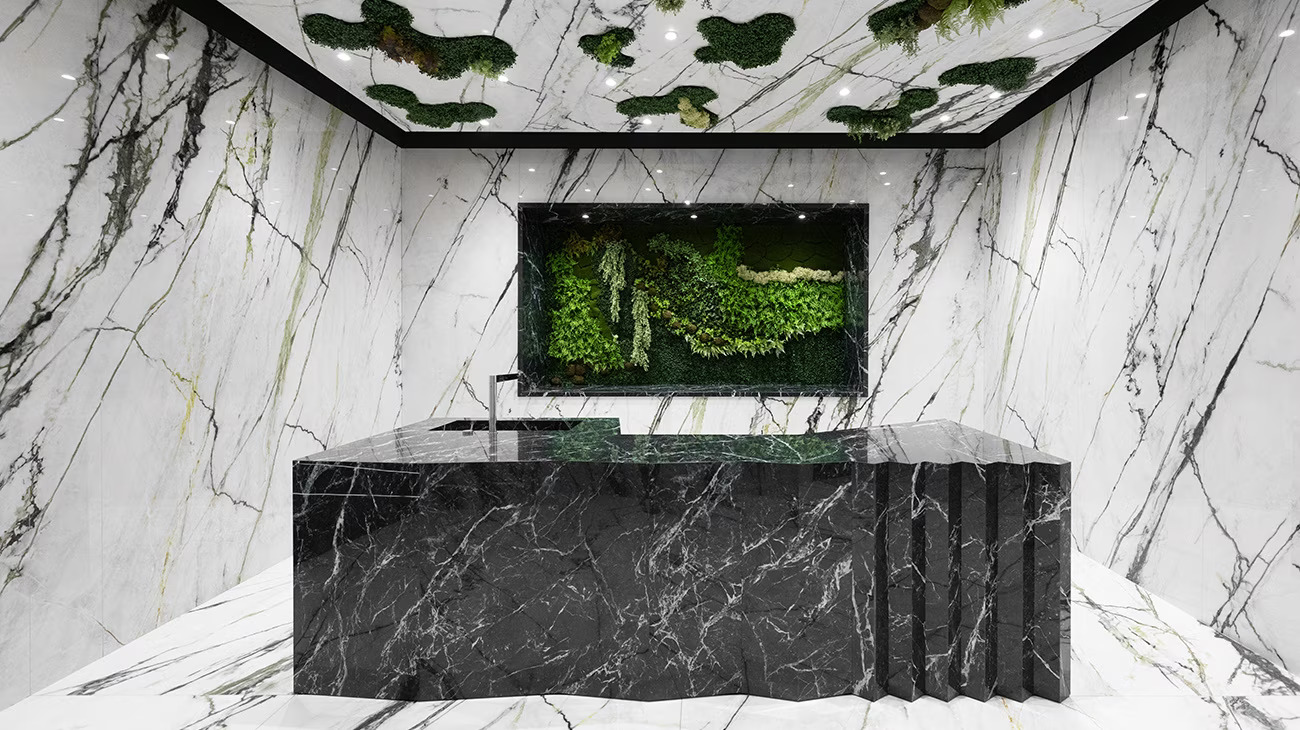 易於與自然元素搭配,並具有較高的環保礦物質含量,人造石的物理和技術特性使其成為垂直花園中環保永續發展的好選擇。