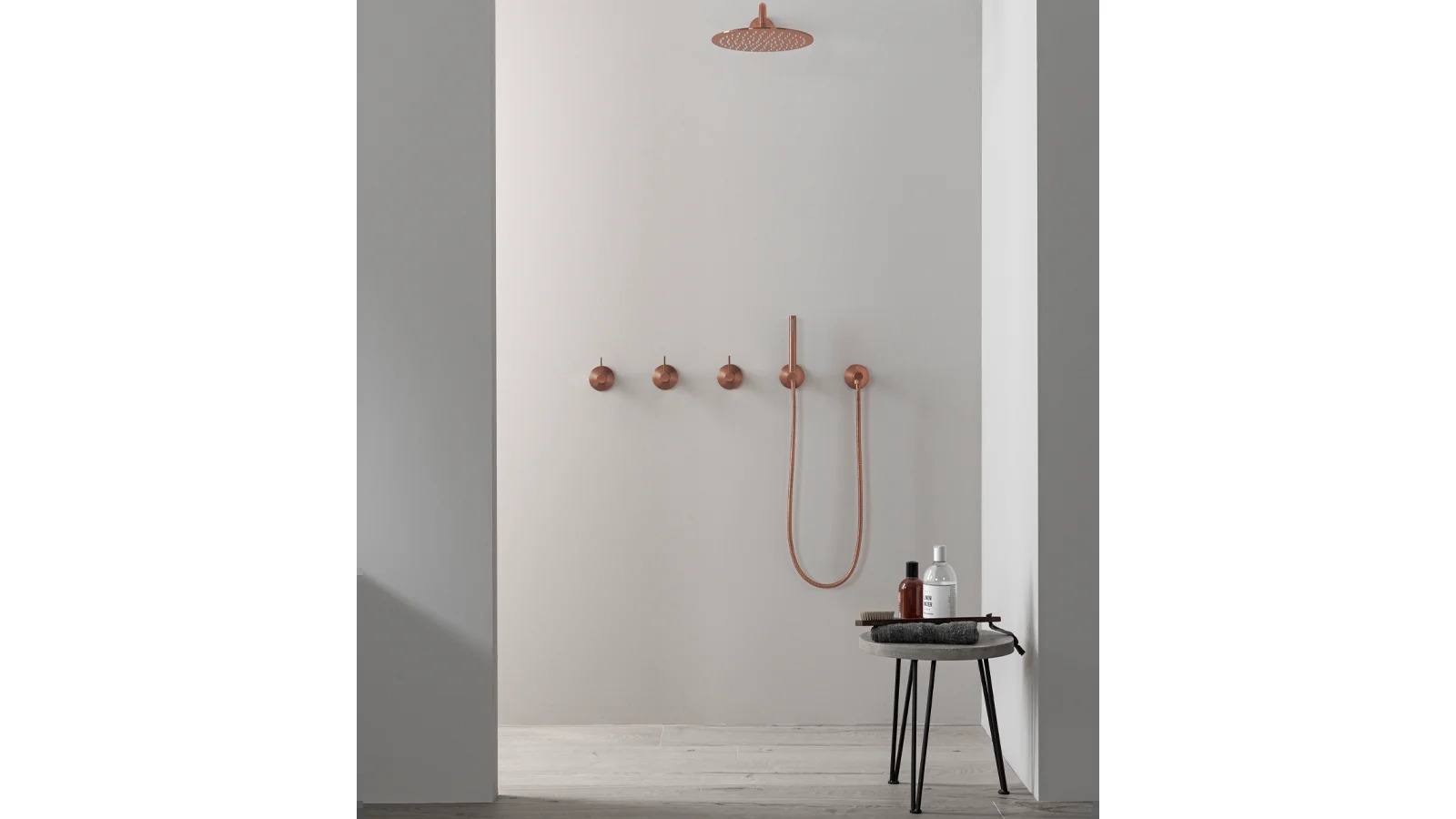 最後,與溫暖的極簡主義相呼應的的另一種色調是”銅”,像是Noken的Lignage古銅色拉絲浴室龍頭