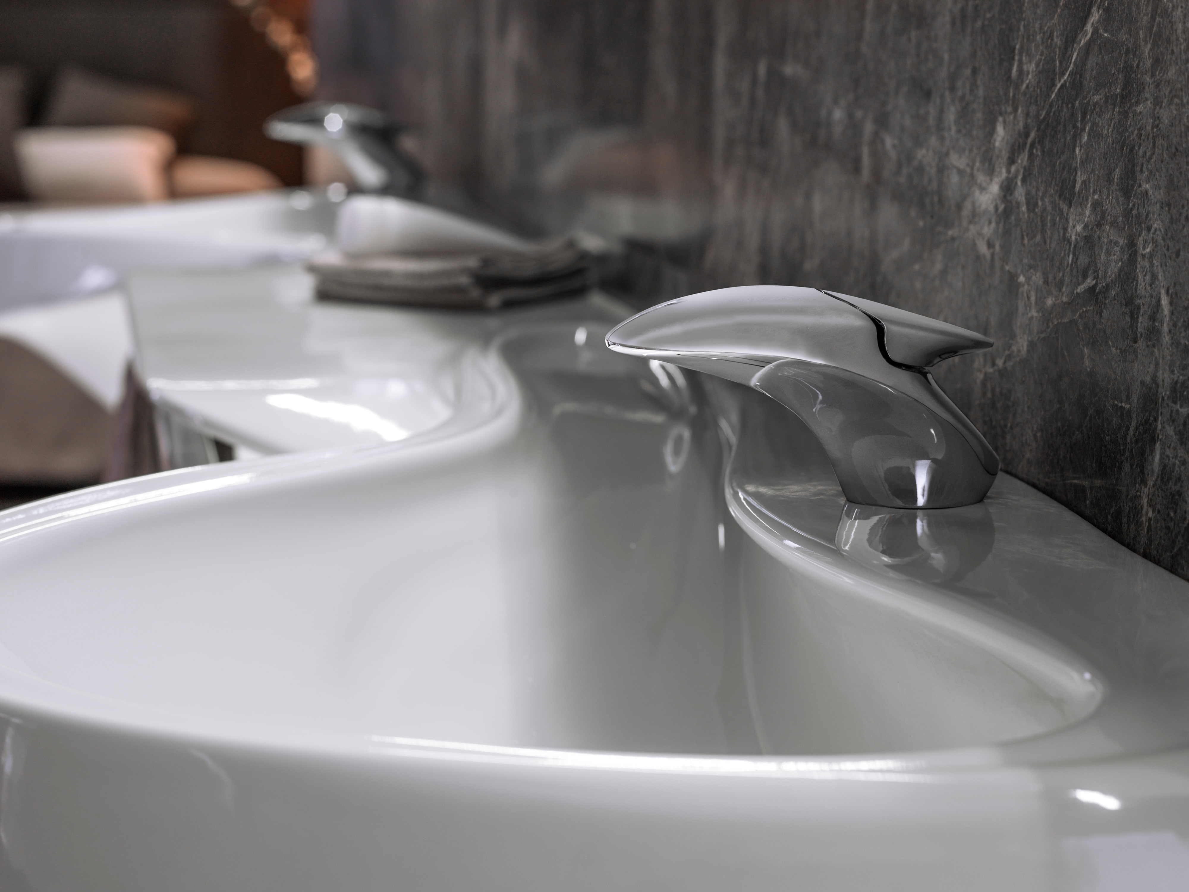 Lignage傳承系列龍頭優美的弧形形狀和柔和的線條顯露出雍容的古典美學,成為浴室中奢華、奪目的焦點。