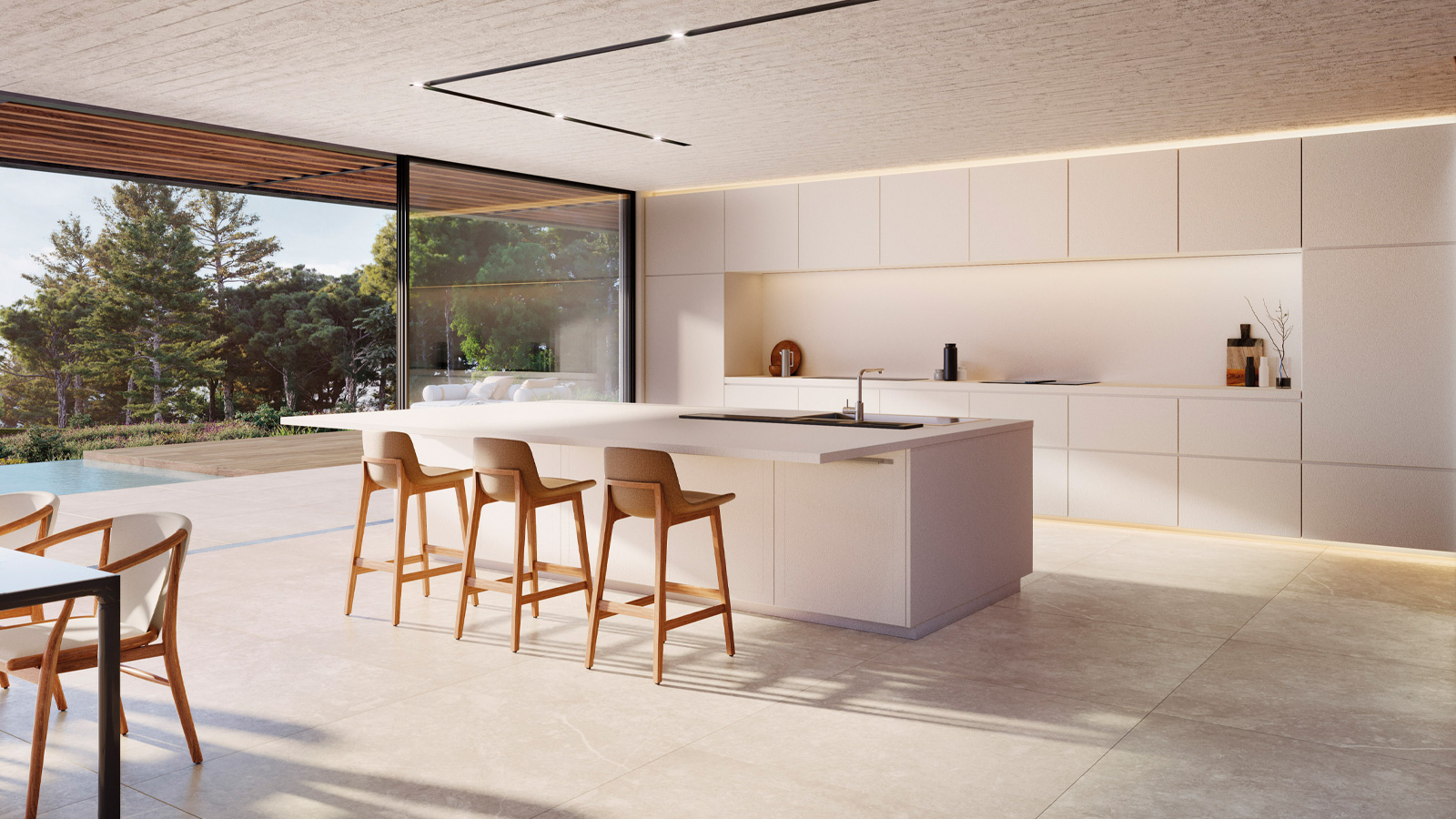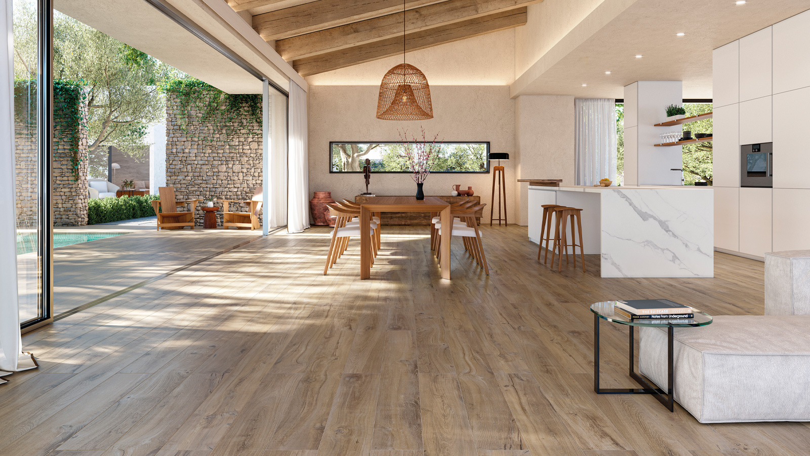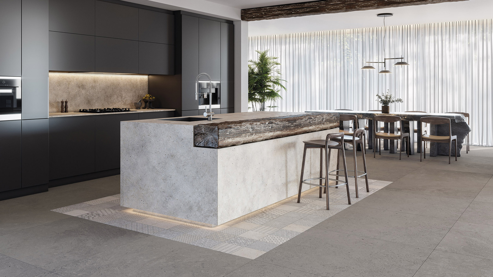我們花在廚房的時間越來越多,它已成為家庭生活的中心。這是我們做飯、與家人聊天、與朋友一起吃零食或閱讀的地方。我們建議在地板和牆面上使用大尺寸的磁磚,可將空間與廚具融合在一起以提升空間整體性。