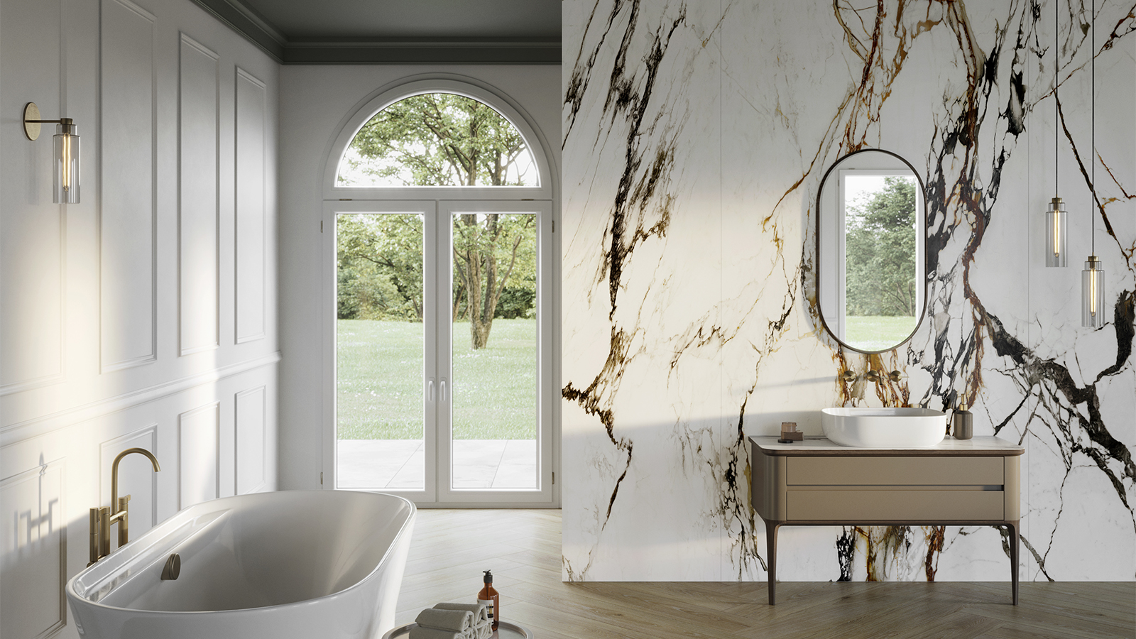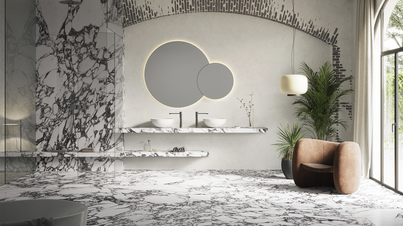 像是Indic印迪系列或Fontana芳塔納系列或是大理石風格的XTONE大型輕磁板Viola Blue托斯卡那系列或Paonazzo Biondo流金歲月系列,將使您的空間感覺更明亮寬敞。