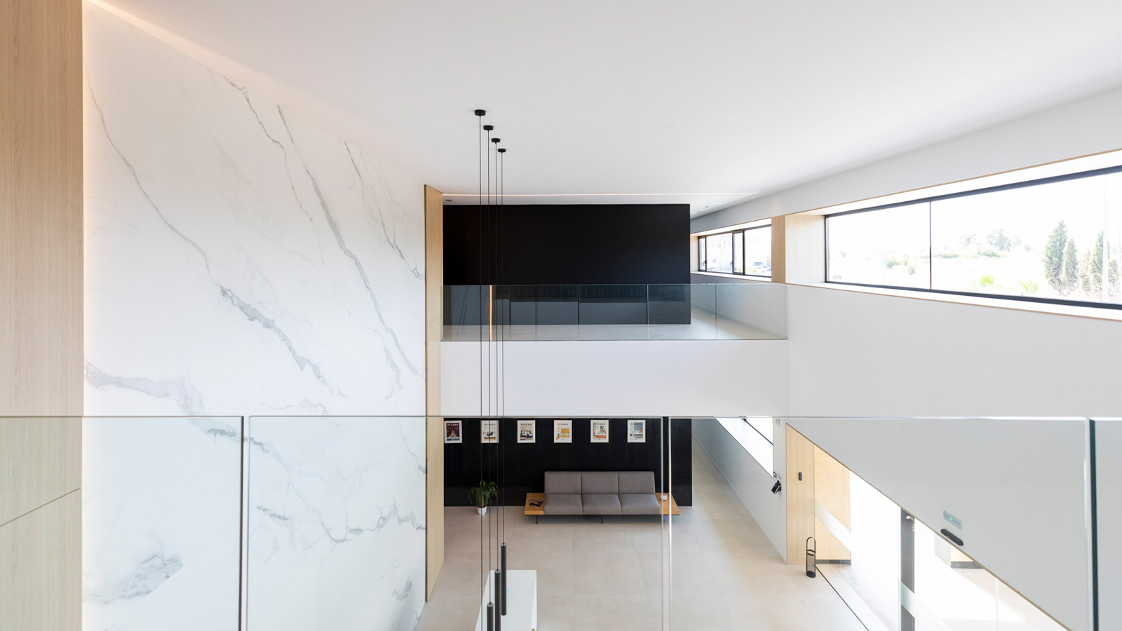 為創造一個溫馨、友善的辦公空間,MaxColchon公司選擇可垂直順紋的ARIA WHITE艾瑞亞白改造位在西班牙瓦倫西亞的總部大廳,該公司通過XTONE仿真的大理石材面感,在挑高的大廳呈現自然靈動、氣勢非凡的空間效果。