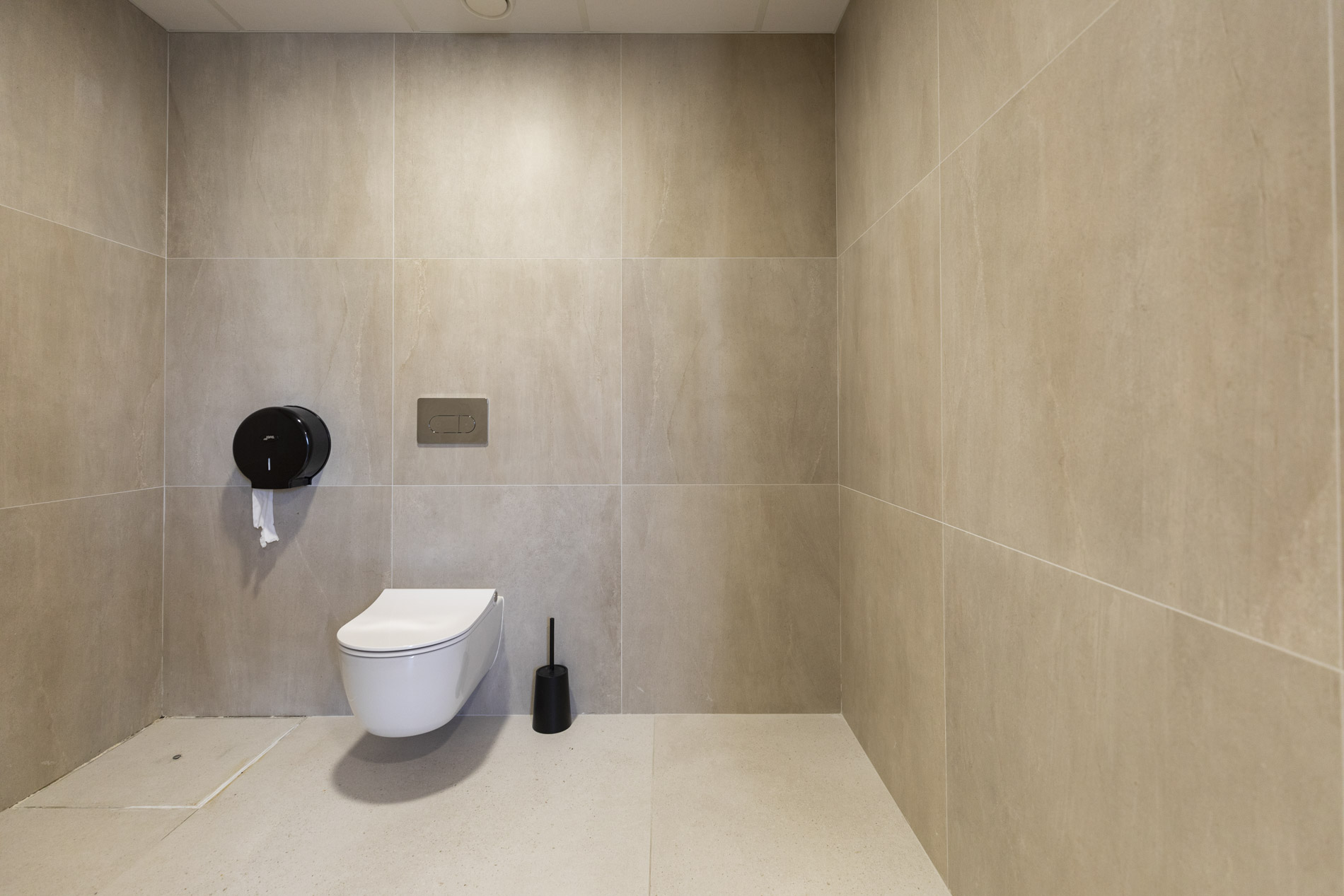 同時,在衛浴空間中再次選擇了Bottega White寶緹嘉白地磚與Urban Natural奧本壁磚作為主軸,木皮材質貼面與石材效果的地壁磚呈現天然舒適的氛圍。