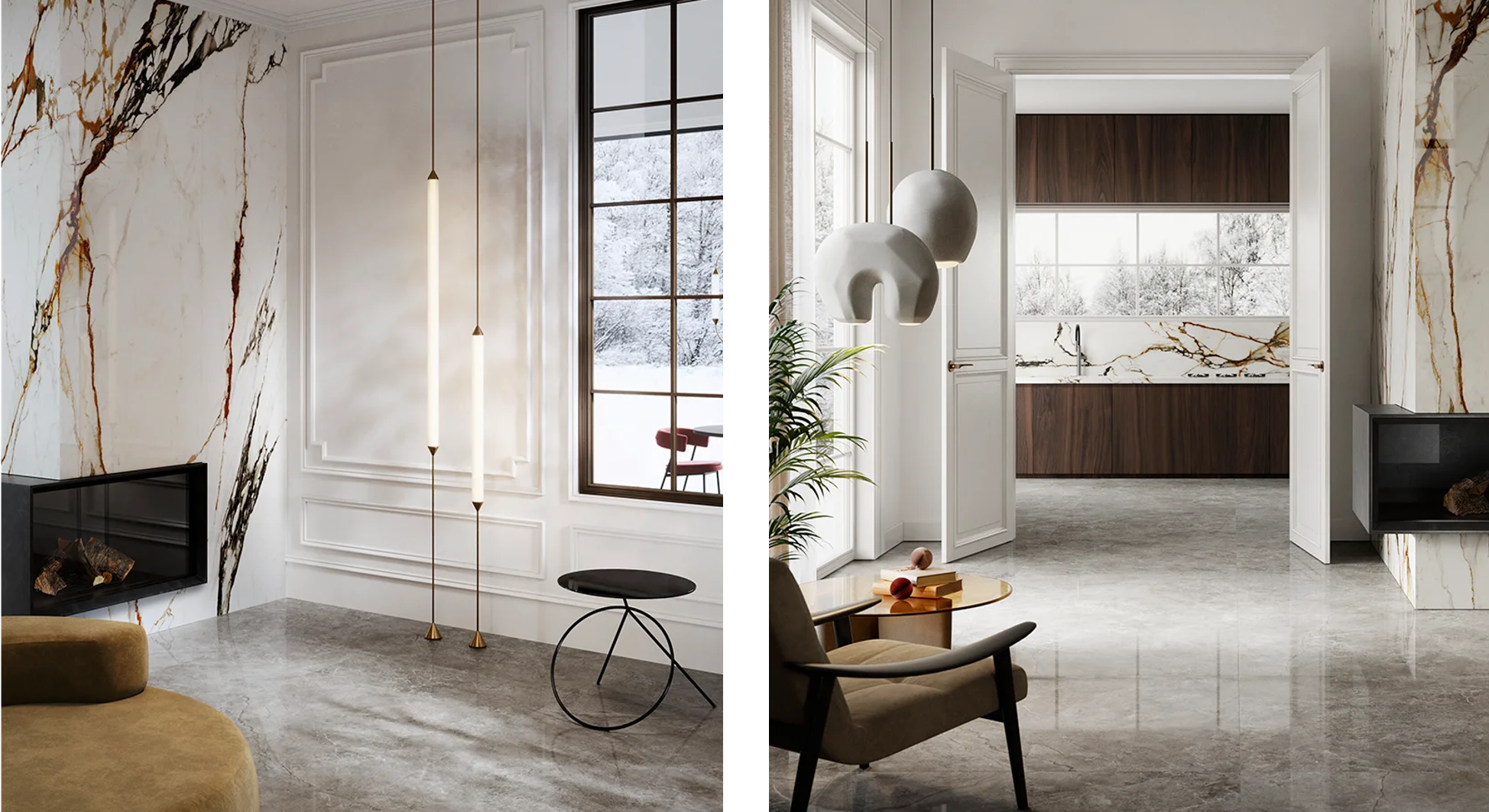由於XTONE取材自天然石材,完美擬真大理石的紋理,可以挑選暖色系的Paonazzo Biondo流金歲月、Calacatta Gold金卡拉、Astana Gray 阿斯塔納、Taj Mahal泰姬瑪哈…等系列,以具有石材優雅紋路的XTONE裝飾各個空間的牆面和地板,讓居家空間成為藝術品。