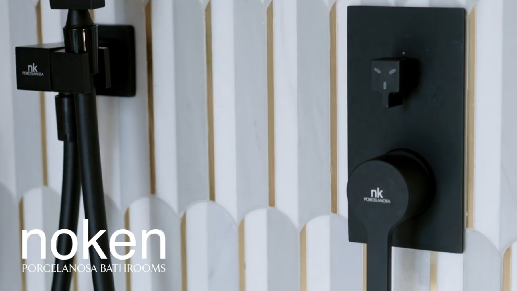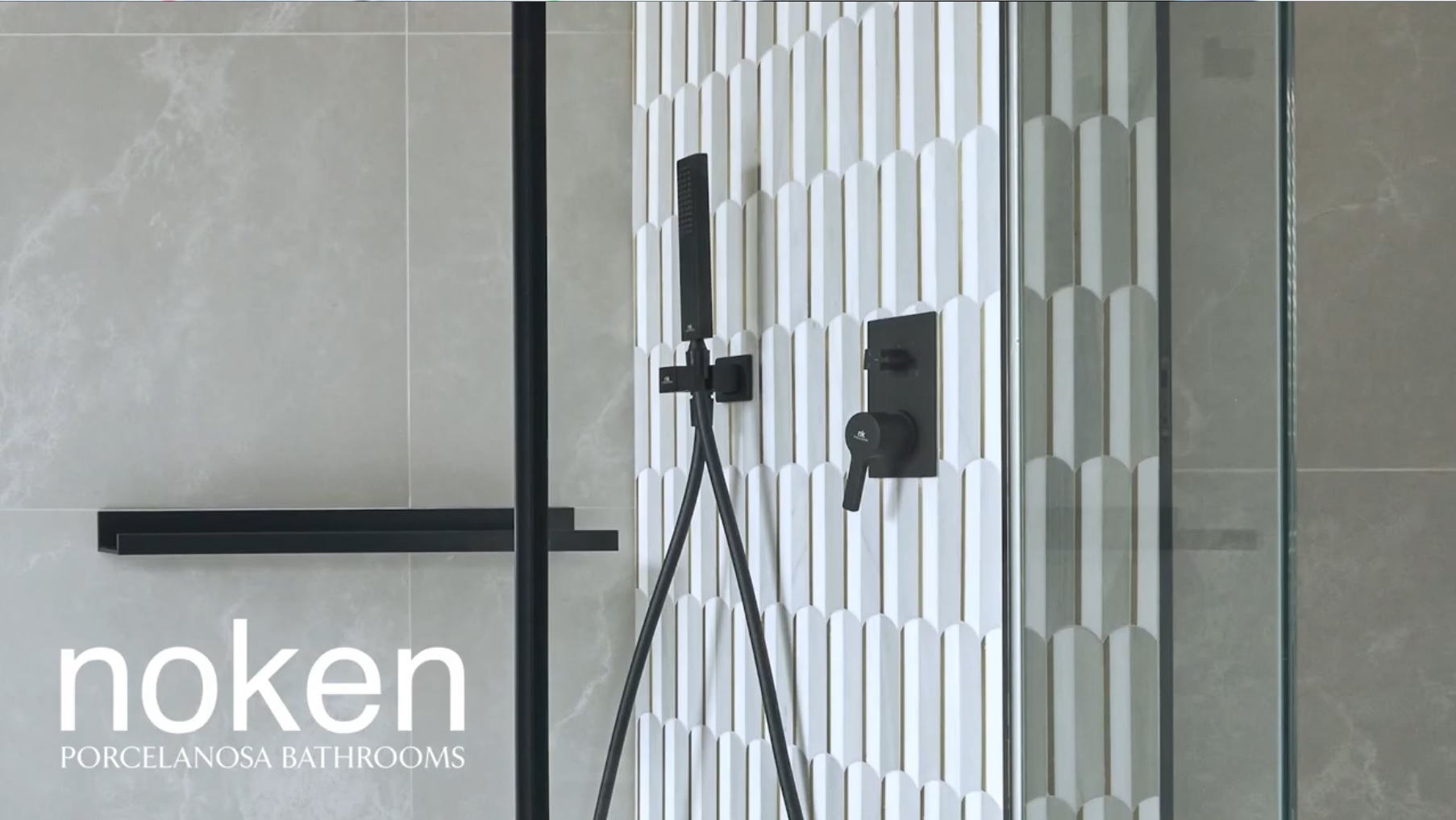 從影片中可見,衛浴裝潢以明亮白色系為主,淋浴牆面搭配L’ac的PIANO琴鍵馬賽克磚,文藝復興風格設計的PIANO琴鍵系列馬賽克,結合大理石材與鍍鈦金屬條,勾勒出優雅的線條,好似樂音回盪、不絕於耳,在家就可以體驗像在五星級設計酒店渡假的感受。