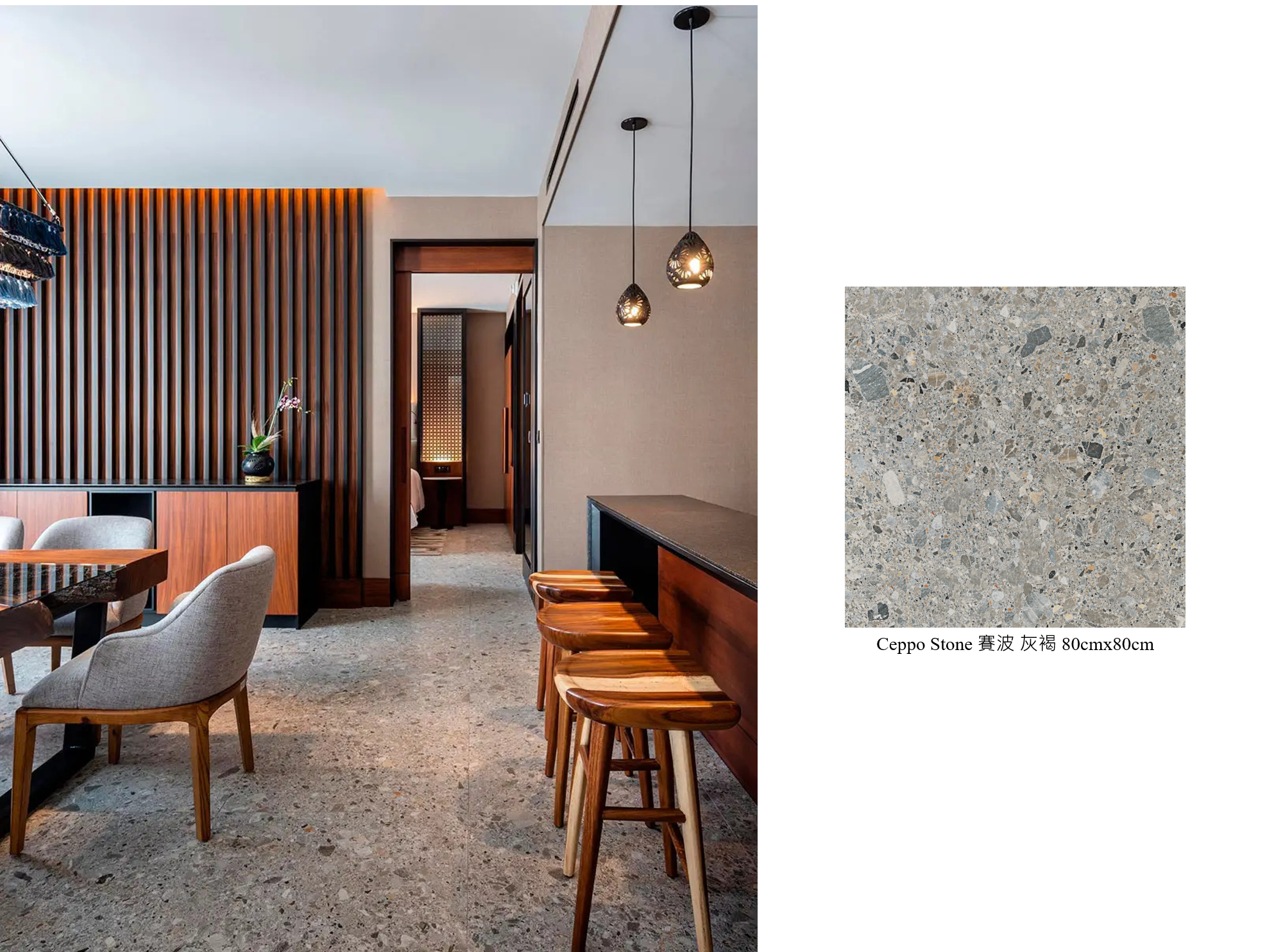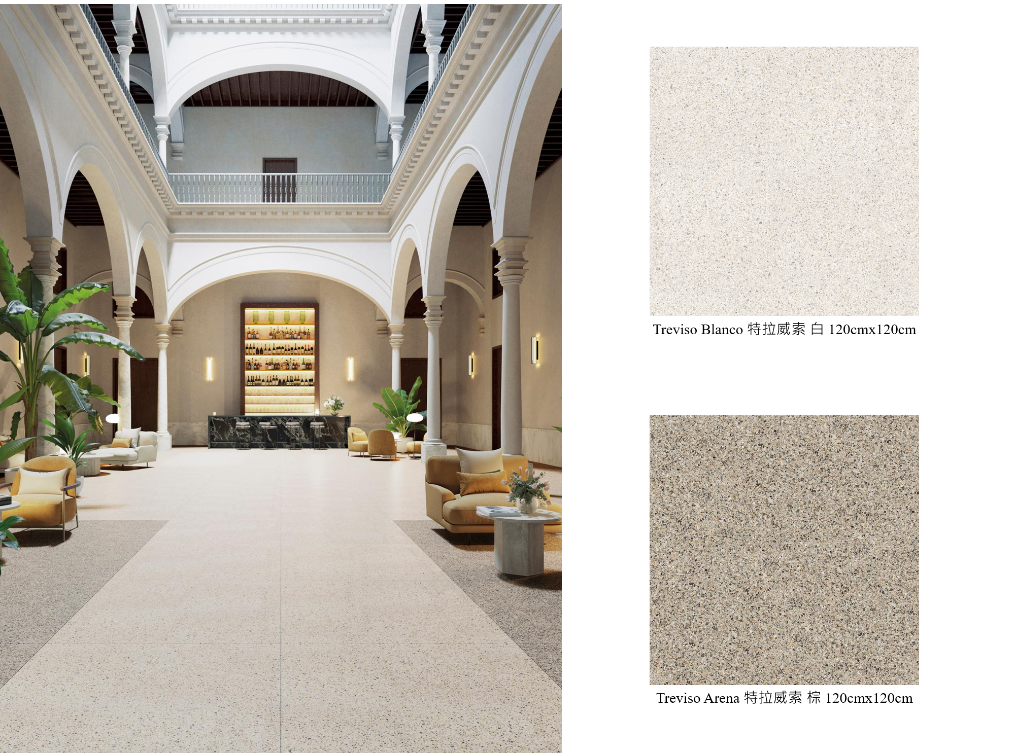 水磨石磁磚提供多種設計和顏色可能性。 它巧妙地重現了水磨石的獨特美學效果,透過更耐磨和實用的磁磚,將傳統水磨石的的特點完美呈現