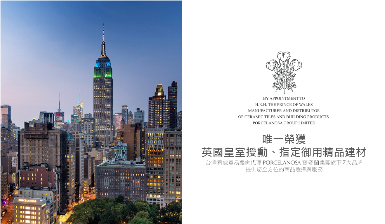 PORCELANOSA Grupo寶瓷蘭,是西班牙第一大建材集團,以「Quality is our DNA」的核心精神,提供多樣化、高品質的創新建材,是唯一榮獲英國皇室授勳、指定御用的精品建材!