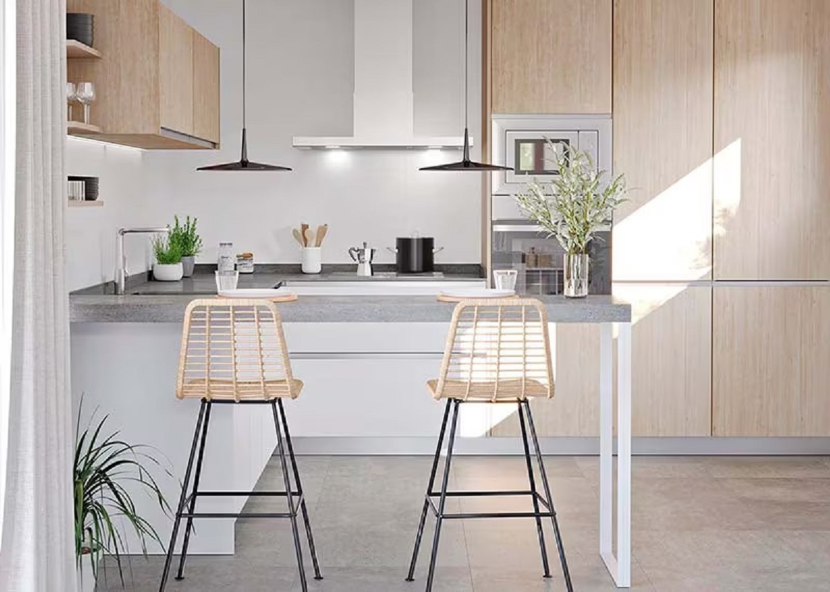 在廚房濕區,木紋磚、SPC地板比天然木材更適合。它提供了耐磨、防滑和防水的特性,它們還具有與真實材料相映生輝的華麗設計。由於其美觀和耐用性,這些天然木材的替代品是白色廚房不錯的選擇。
