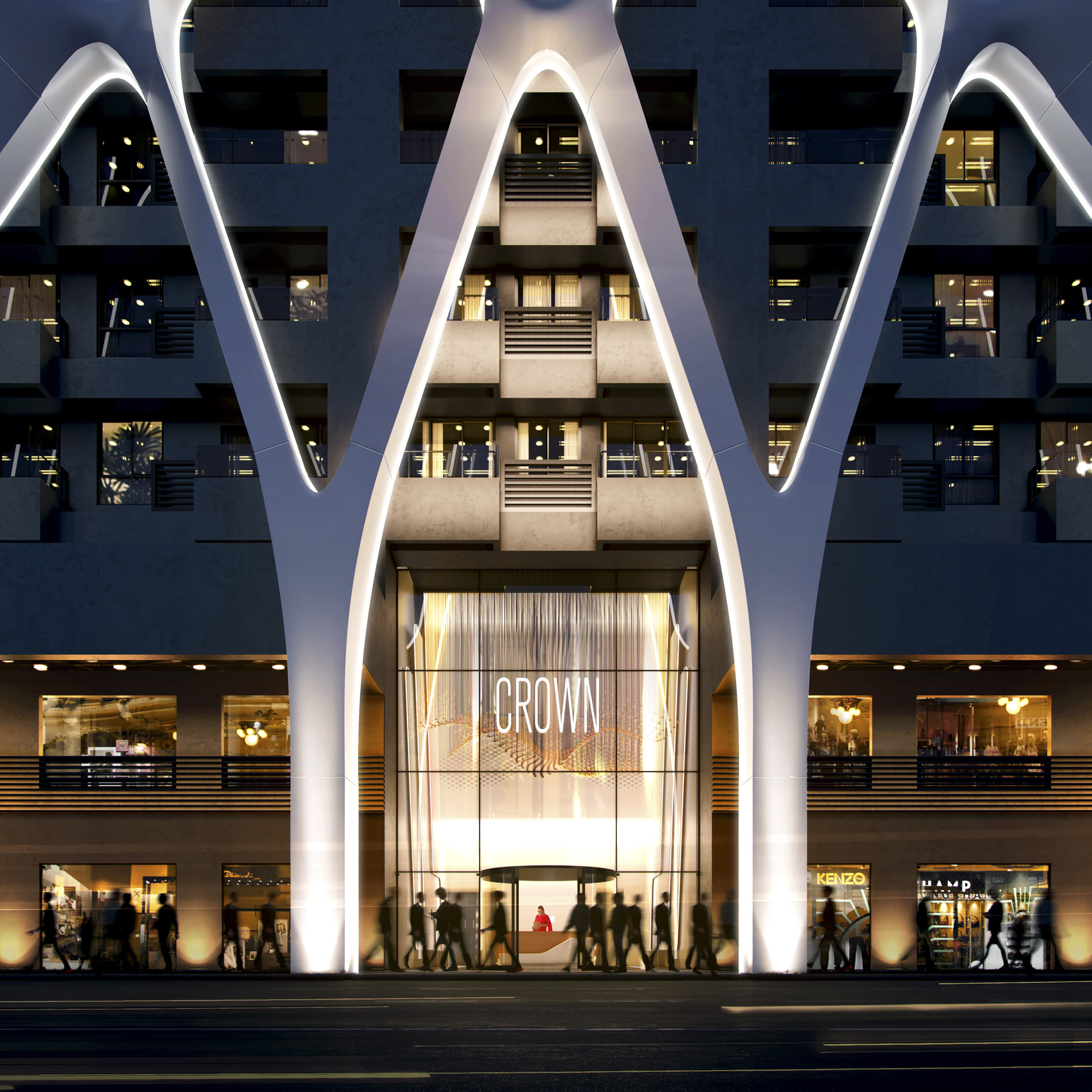 皇冠的結構是ON-A建築師事務所、HPA ARCHITECTS & ASSOCIATES建築師事務所與Butech的專業外牆工程團隊共同合作的成果。「外圍結構採用KRION® K·Life 1100抗UV人造石製成,它可以創造任何形狀並達到無接縫的效果,這是此案得以保持流暢動感結構線條的關鍵。它獨特的抗UV專利技術,可以確保KRION® K·Life 1100在長期日光照射下,不會黃化、裂解,永保純淨、潔白的外觀」:Butech如此表示。