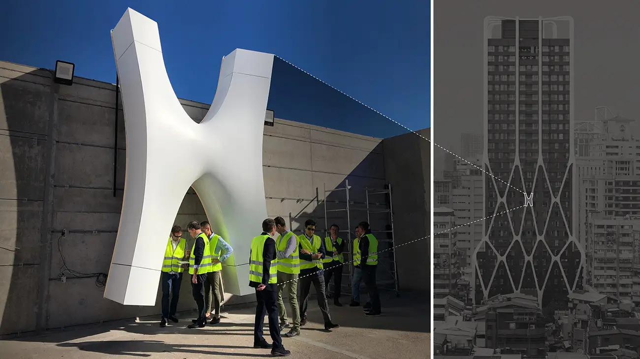 西班牙建築團隊ON-A致力於打造無限制建築,強調「通過技術創造非凡設計」,在西班牙、沙烏地阿拉伯等世界各地打造過無數經典建築,此次選用KRION® K·Life 1100抗UV人造石和Butech開發的通風立面外牆系統打造全台灣第一座獨特雙曲線節點的結構外牆。